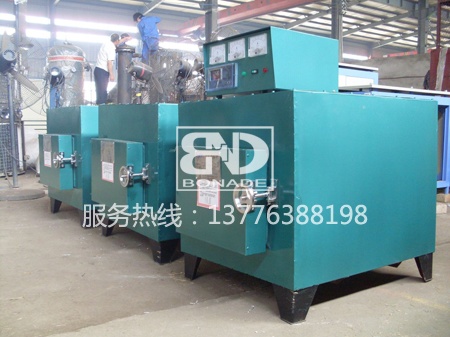 箱式電阻爐由爐殼、爐襯、加熱元件、爐門及控制柜等部件組成。爐襯由0.6的超輕質耐火磚及耐火纖維等砌筑而成;加熱元件是由高電阻合金絲繞制成螺旋狀,安置在爐膛二側,爐底后墻及爐門上。被加熱工件放在爐膛內的爐底板上,爐門的升降是通過手搖鏈輪或機械傳動來進行的,在爐頂上設有二支熱電偶,一支作為檢測爐溫用,另一支作為超溫保護用。