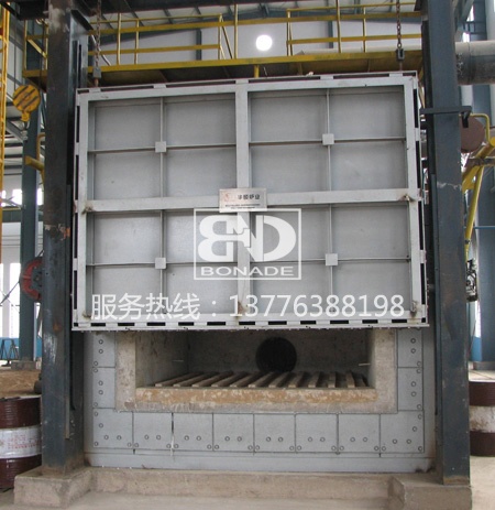 5、臺車耐火砌體采用高鋁定型磚結構,與爐體密封效果好,耐壓強度高。臺車面擱置墊鐵供堆放工件用。臺車幫板全部采用澆筑件,保證車體不變形及耐用性。爐車與爐襯的密封采用自動壓緊結構。側密封的開、閉與爐車進出連鎖。